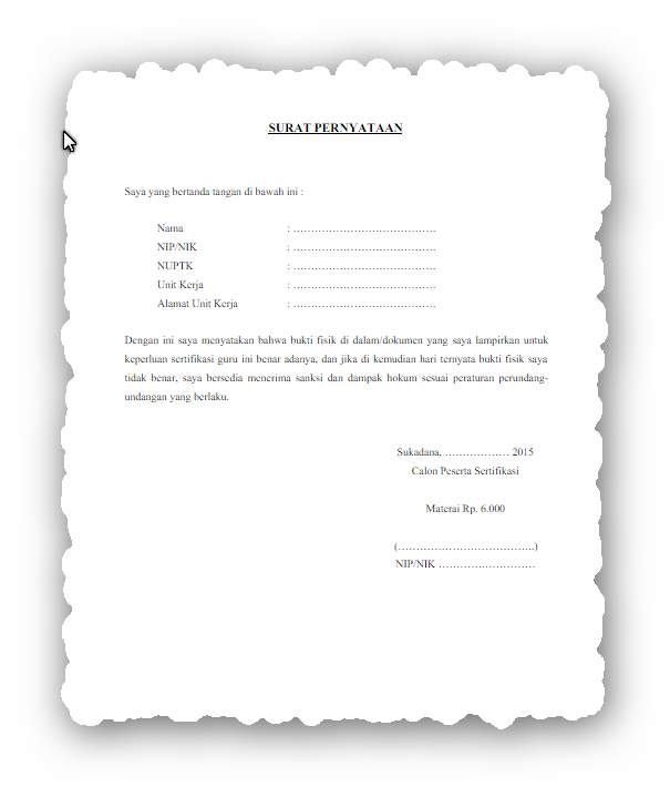 > Surat Pernyataan dari calon penerima bahwa berkas/dokumen yang diserahkan sanggup dipertanggungjawabkan keabsahannya. Contoh format ada di BAWAH INI